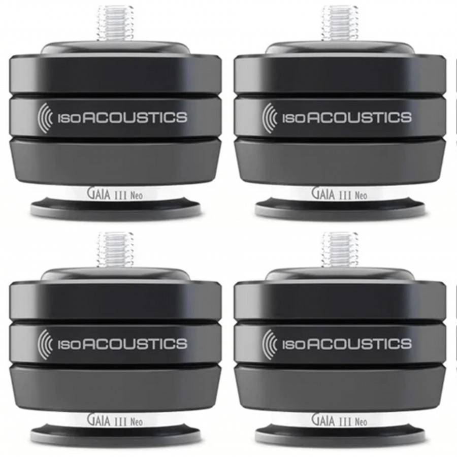 IsoAcoustics Gaia III Neo vibration absorbers improve clarity and sound openness for speakers or subwoofers weighing 32kg or less. These feature a machined stainless steel body with an elegant dark chrome finish. Incorporating IsoAcoustics' patented design principles, the Gaia Neo provides a high degree of isolation while resisting lateral movement and oscillation to maintain alignment with the listening position. Internal reflections from the support surface are attenuated, providing an enhanced three-dimensional image for natural, spacious sound.
