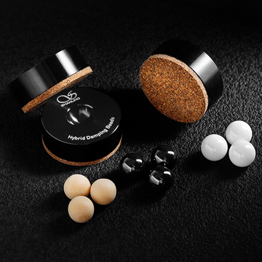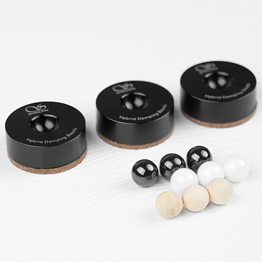 Shanling Damping Beads are vibration-damping feet featuring a multi-layer design. The base is made of aluminum and rests on a layer of cork, ensuring stability and durability while reducing vibrations. To allow for maximum adaptability, wooden, ceramic, and steel beads are included, enabling users to adjust the feet’s load capacity to suit their Hi-Fi equipment. The wooden beads support light loads of up to 1kg per feet, while the ceramic beads support medium loads of up to 2.5kg per feet. Finally, the steel beads support loads of up to 10kg per feet.
