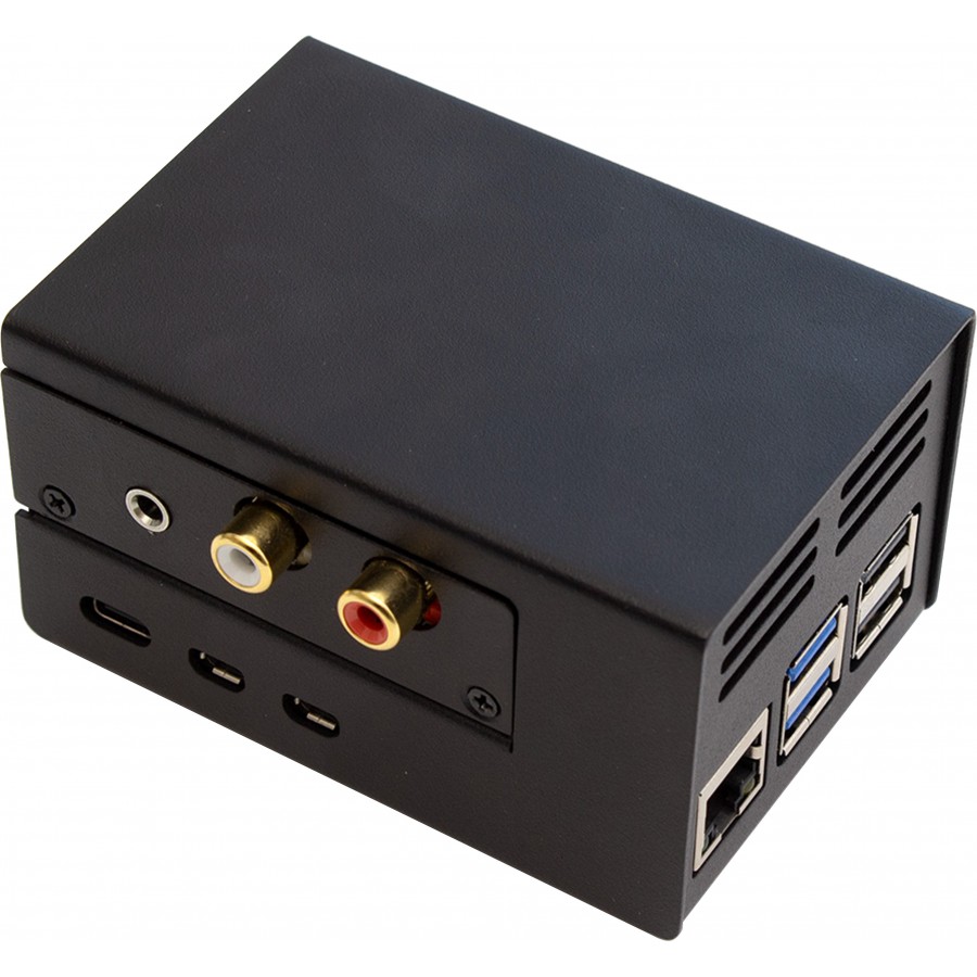 This metal case can receive and protect a Raspberry Pi 5 combined with a HiFiBerry module. It's easy to install using the screws supplied. This new version of the HiFiBerry cases has a back plate that can be adapted to suit the brand's various modules.