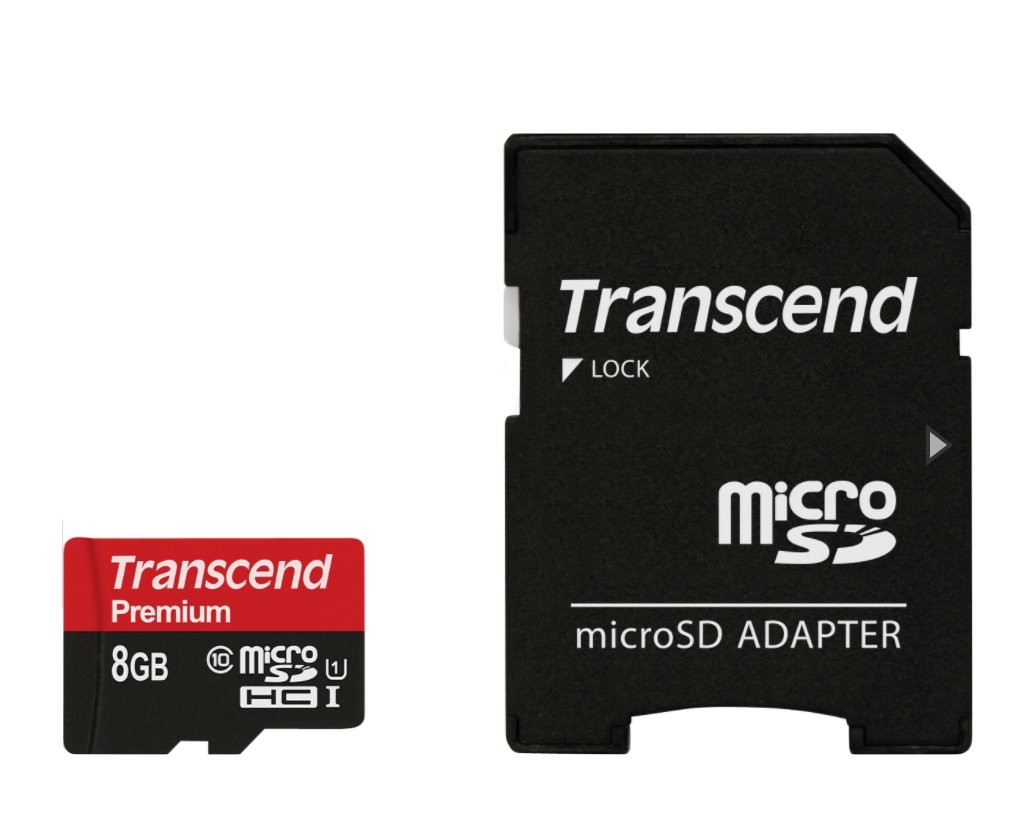 Micro SDHC class 10 memory card by Transcend. SD 2.0 compliant with a minimum write speed of 4MB / s second and a read speed of 90MB / second.
