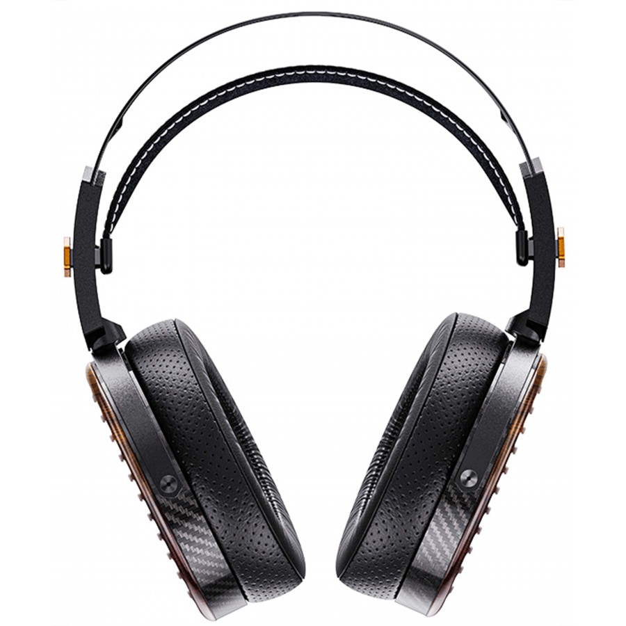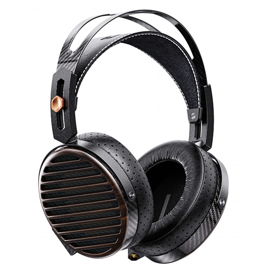 In terms of connectivity, the headphone is equipped with a 4.4mm balanced connector, along with adapters to 4-pin XLR and 6.35mm jack, ensuring wide compatibility with both portable and desktop audio systems. Its design incorporates premium materials such as carbon fiber and natural wood (zebrawood), for a controlled weight of around 427g, combining durability, comfort and acoustic performance.