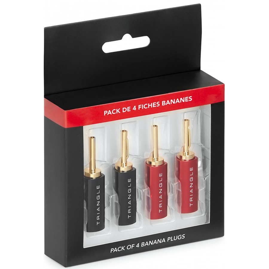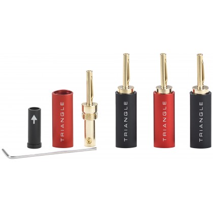 Triangle's BP450 banana plugs feature gold-plated contacts that provide excellent conductivity while effectively protecting them from corrosion. The body is made of anodized aluminum to ensure proper insulation. Compatible with most existing cables up to 4mm² in cross-section, it screws easily onto a stripped cable.