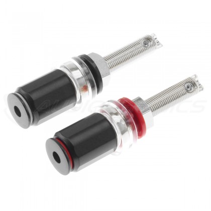 These speaker terminal blocks offer excellent design quality at an affordable price. Their contacts are made of rhodium-plated alloy copper, ensuring excellent conductivity and resistance to oxidation. They accept cables up to Ø6mm in diameter, and are easy to install thanks to a screw-on system.