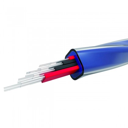This Neotech Nemos-1080 high-end speaker cable benefits from an all-inclusive design, incorporating the best possible components for maximum conductivity and optimal signal transmission, resulting in high quality sound reproduction. The cable incorporates 2.1mm² (14AWG) high purity rectangular OCC Silver conductors, individually insulated with PTFE jackets, and a 2.1mm² (14AWG) cross-section. Each pair of conductors benefits from additional PE insulation. Each pair of conductors has an additional PE insulation and is then sheathed with a PVC inner sheath and then an outer sheath, also made of PVC and transparent. In addition, the special design of the cable allows a strong reduction of the inductance and capacitance effect.