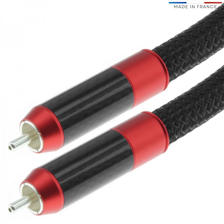 Each Audiophonics Obsidian cable is terminated with Viborg VR106AG male RCA connectors. These maintain the high conductivity of the cable by using pure silver contacts, housed within a sublime aluminum and carbon fiber body with PTFE insulation.