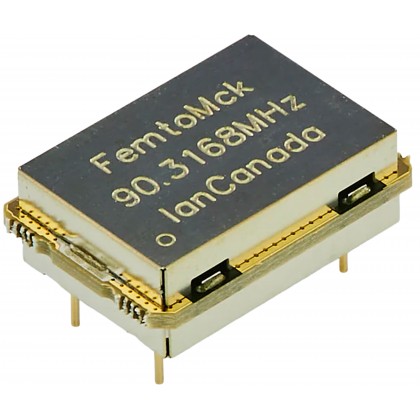 The Ian Canada 81E is a low-phase-noise femtosecond clock operating at 90.3168MHz. The crystal oscillator features double shielding on both sides of the circuit board, which minimises electromagnetic interference and ensures operational stability.