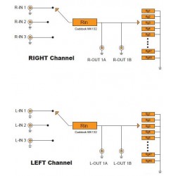 This type of shunt switching potentiometer is ideal for the design of transparent and dynamic hand-held preamplifiers. This conventional switched resistance technology is superior to carbon potentiometers with higher reliability.
