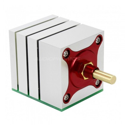 It is therefore the R-In resistor that conditions the minimum input impedance, when the potentiometer is on the 0 position. A true jewel of audio goldsmithing, this magnificent 48-position stereo attenuator is entirely assembled by hand in Europe. It is composed of 1% SMD resistors and a CNC machined aluminium body which gives it a very high end design. This type of potentiometer is clearly superior to carbon track potentiometers because the signal only passes through 2 resistors. Wear and tear is also much less important.