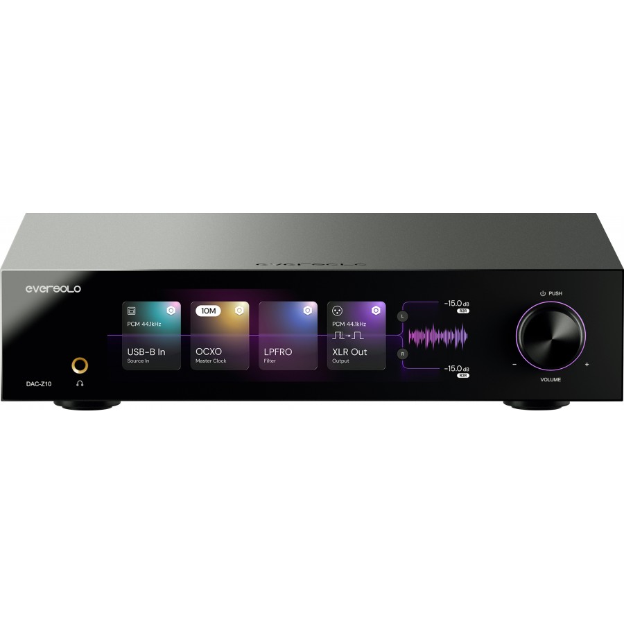 The DAC-Z10 also incorporates a high-precision clock system, the Eversolo Precision Core™, combining a temperature-controlled crystal oscillator (OCXO), PLL (phase-locked loop) technology, and FPGA clock reconstruction, ensuring optimal time consistency and reduced jitter. Its R2R volume control and integrated preamplifier enable analog signal management, while its comprehensive connectivity (USB, XLR, RCA, HDMI ARC/eARC, Bluetooth 5.0) makes it a versatile device, suitable for HiFi systems as well as home theater or headphone setups. With a total harmonic distortion plus noise of only 0.00008% and a dynamic range of 130dB, this DAC is the complete solution for high-fidelity audio enthusiasts.