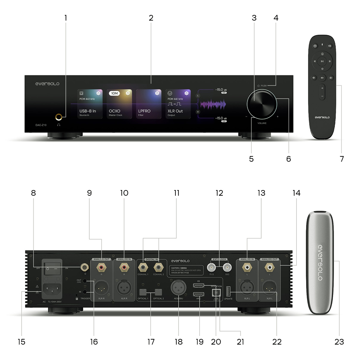 Precise synchronization is essential for capturing all musical nuances. With support for a high-precision external clock, the Eversolo DAC-Z10 offers unmatched stability and accuracy. It is possible to connect a 10MHz or 25MHz external clock, and the DAC-Z10 provides a 50Ω input and a 75Ω input.