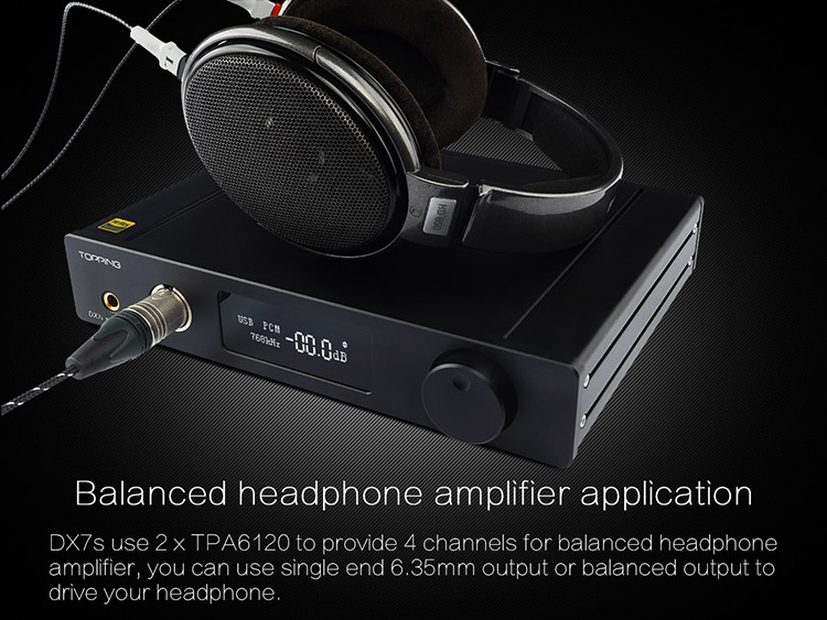 The Topping DX7s with its "form factor" and its 32bit 768kHz capabilities offers many configuration possibilities. Combining the functions of DAC, digital preamplifier and high impedance headphone amplifier, it will meet most needs with a high-performance balanced headphone output.