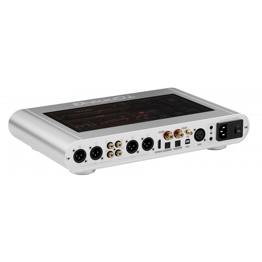 The Topping DX9 Discrete is an R2R DAC / headphone amplifier with even better performance than its predecessor, the DX9, which was based on AKM technology. the DX9 Discrete is based on a balanced PSRM circuit with 16 elements per channel combined with R2R resistor networks, as well as an AK4118 optical receiver chip and an XMOS XU-316 USB interface, enabling it to support high-resolution sampling rates up to PCM 32bit 768kHz and DSD512. The circuit is complemented by Altera MAX II CPLD, a high-precision clock, relay volume control, and a 6-channel NFCA amplification circuit for unmatched performance and power.