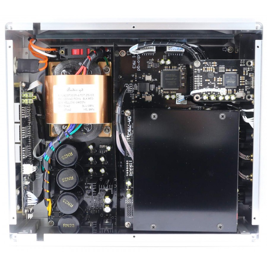 The Audio-GD R-1 MK3 is a discrete R2R digital-to-analogue converter designed to provide conversion up to PCM 32bit 384kHz and DSD512, using a matched resistor architecture driven by FPGA DSP to ensure linearity beyond 16 effective bits. This resistor ladder topology, combined with proprietary digital processing, aims to achieve a more direct analogue reproduction than Delta-Sigma conversion, while limiting the impact of jitter and clock noise on the final signal.