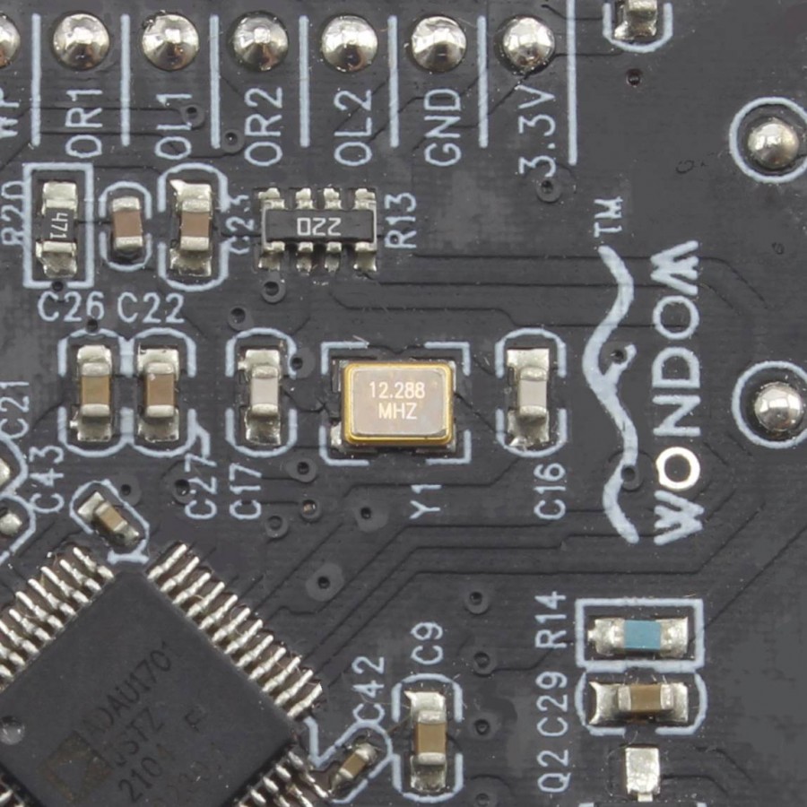 The Wondom ADAU701 of the APM2 range is a compact DSP (Digital Signal Processor), allowing efficient digital filtering and equalization. Ideal in the context of DIY installation, particularly for the manufacture of active 2.1 speakers, for the acoustic correction of multimedia terminals or for in-wall equalized sound systems, the module is particularly versatile.