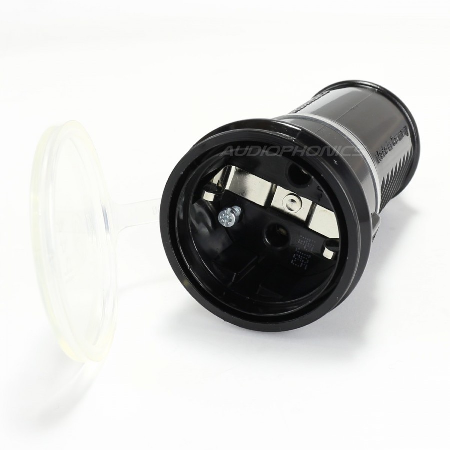 This Schuko Type F female connector from Mennekes is designed in Germany and complies with European standards. It also features a cap to protect the contacts when the plug is not in use. Cable assembly is very simple, using a screw-on system. The rear of the connector features a flexible ferrule that can be cut to suit different cable diameters: Ø5.4-8.5mm / Ø8.5-11mm / Ø11-13.5mm / Ø13.5-15mm.