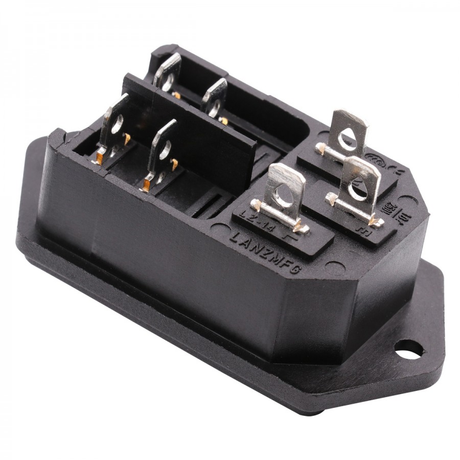 This standard IEC C14 power supply socket incorporates an illuminated toggle switch. It allows mounting on a device panel to set up a power supply input with power-on switching.