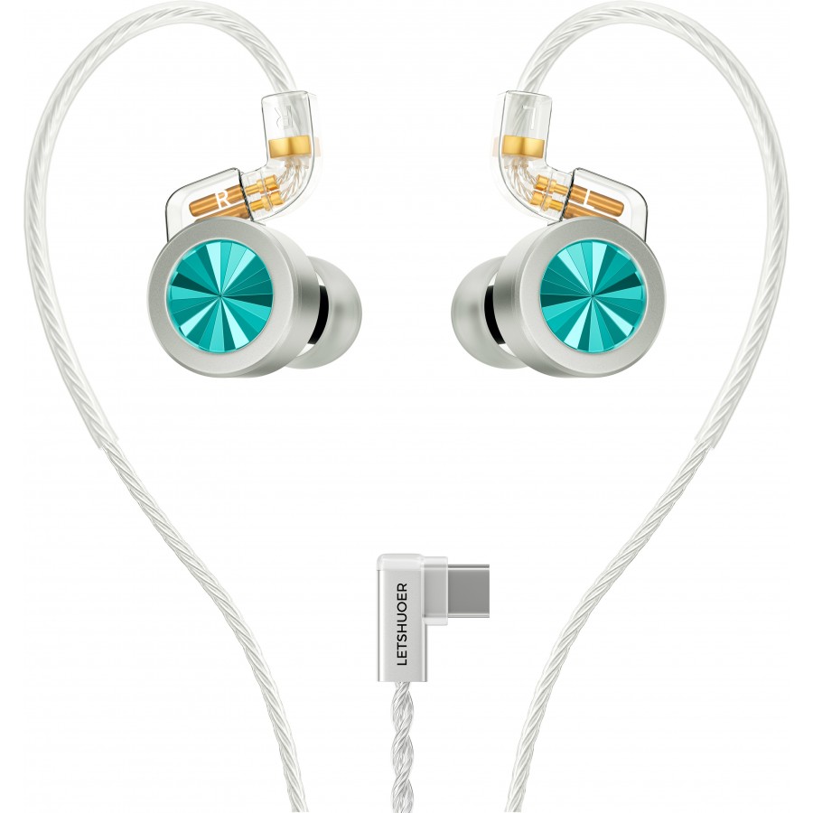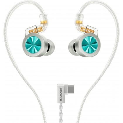 The Letshuoer D02 are in-ear monitors (IEMs) designed to deliver a high-quality audio experience at an affordable price. This model stands out for its elegant design, combining an aluminum alloy front plate and a polycarbonate shell. It is equipped with an 11mm dynamic driver with dual magnetic circuit and dual chamber, ensuring rich, detailed sound reproduction with controlled bass and an immersive soundstage. This version is equipped with a USB-C connector with integrated DAC, allowing high-resolution audio playback up to 32bit 384kHz.