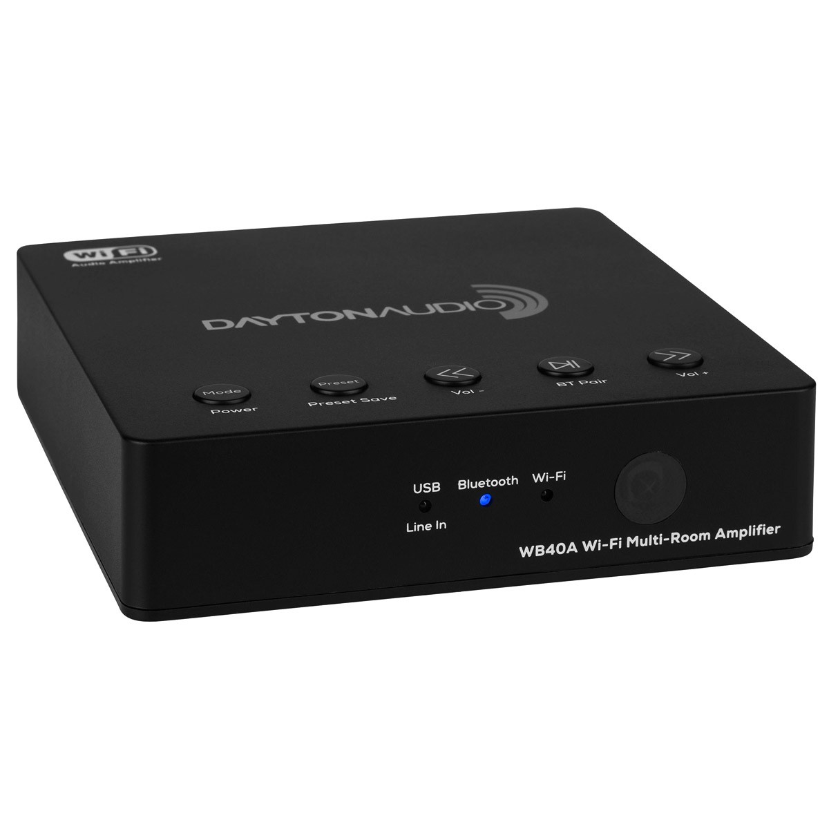 The Hi-Fly WiFi multiroom playback technology and associated application allows you to stream your music directly from your favorite online streaming services, listen to files stored on your device, play music stored on your computer / NAS (local network) or files stored on a USB stick / hard disk connected to the WB40A. The Dayton Audio WB40A and all other Dayton Audio Hi-Fly compatible products can work together using the Hi-Fly or Legacy Player application.