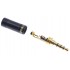 This straight 3.5mm TRRS male jack connector features 24k gold-plated contacts as well as a carbon fiber body. This allows it to resist oxidation and corrosion while also protecting against interference. It accepts cables of Ø6mm or less and is designed for solder mounting.