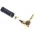 This angled 3.5mm TRRS male jack connector features 24k gold-plated contacts as well as a carbon fiber body. This allows it to resist oxidation and corrosion while also protecting against interference. It accepts cables of Ø6mm or less and is designed for solder mounting.