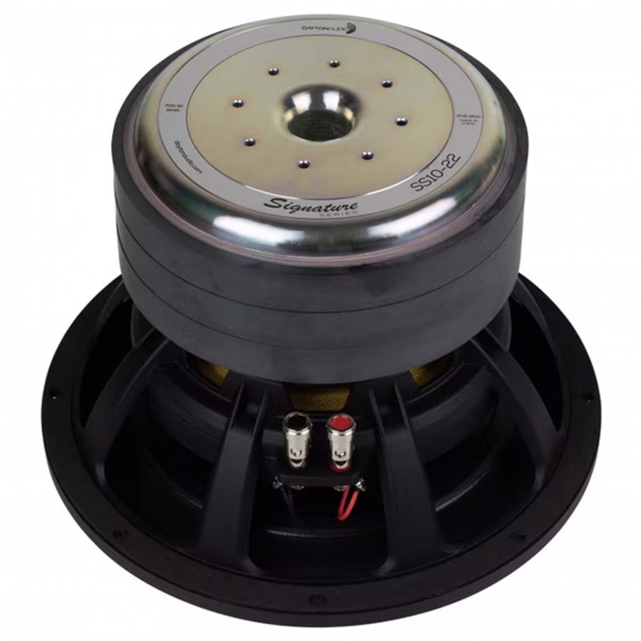 With the SS10-22, Dayton Audio presents a 25.4cm dual voice coil subwoofer driver. Designed for high-power applications, it combines an anodised aluminium cone with a triple magnet optimised by FEA simulation and a dual spider suspension to deliver 700W RMS power output into 4Ω over a frequency range of 20Hz to 500Hz.