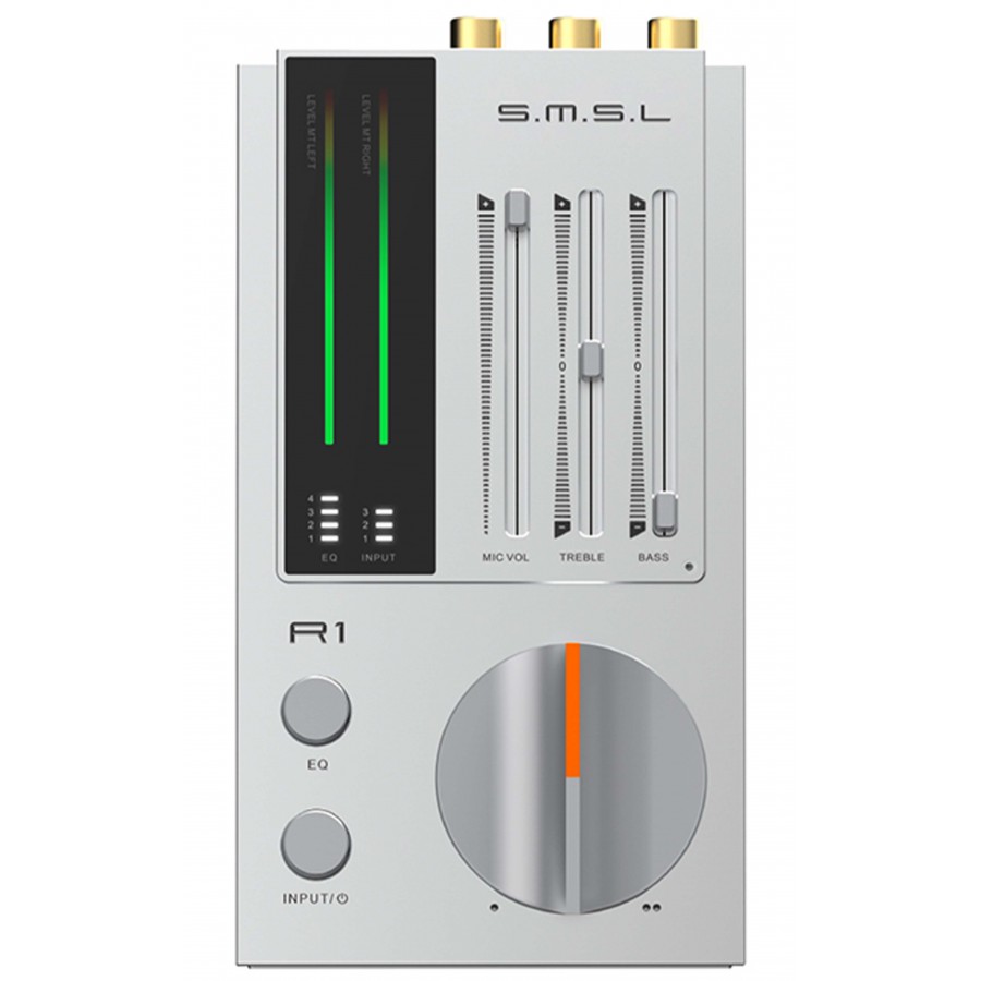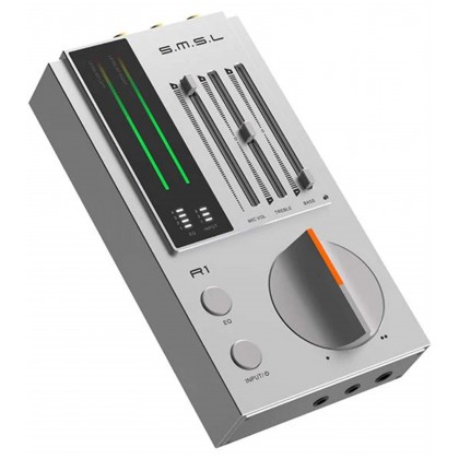 On the front panel, there are three faders, an input level indicator, and a vintage potentiometer for headphone volume control. All of these elements combine to create a sleek, retro look that SMSL R1 users are sure to love.