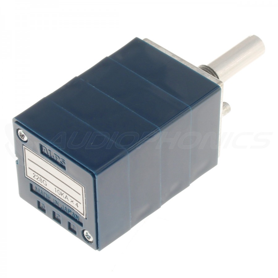 The ALPS RK27 potentiometer offers excellent design quality and performance. It ensures low noise and very good channel balance. This model features 4 channels for a 10kΩ resistor.