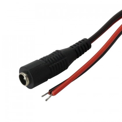On one side you will find a female connector 5.5 / 2.1mm, and on the other 2 wire (Phase and neutral) to be soldered on your DIY application.