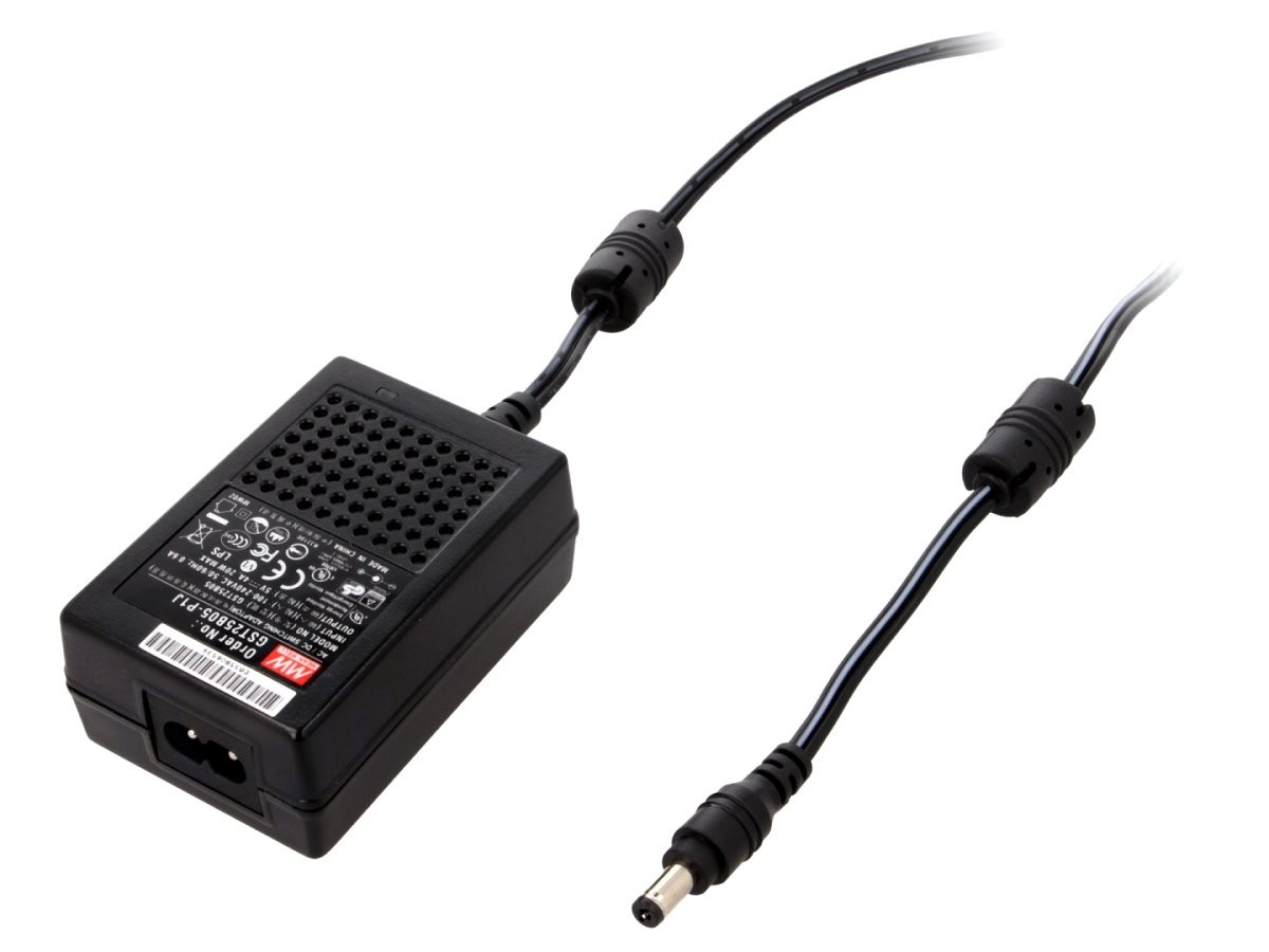 This IEC C8 power adapter incorporates a high performance switching power supply and can deliver a direct voltage of 5 Volts with an intensity of 4 Amps.