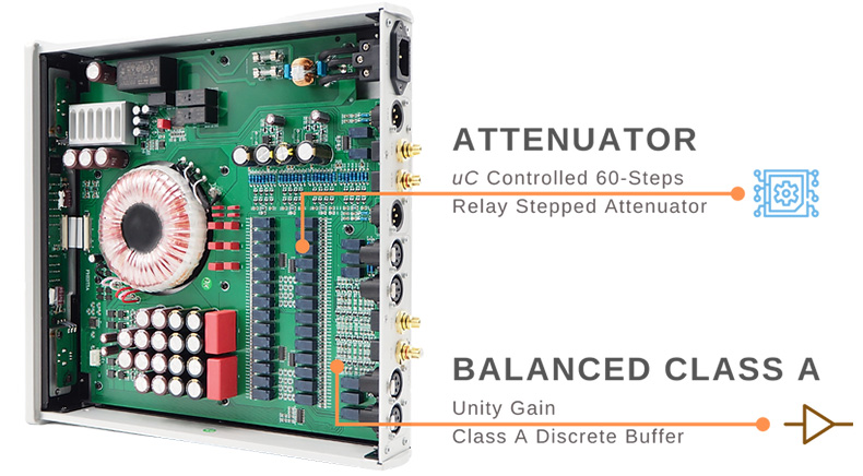 With the Hestia 12Th, Denafrips presents a balanced preamplifier based on 100% discrete components operating in pure Class A to deliver unprecedented sound quality. Its microprocessor-controlled 60-step attenuator with precision-tuned resistors ensures perfect balance between channels and an incredibly low harmonic distortion level of just 0.000230%, giving you the most crystal-clear sound possible.