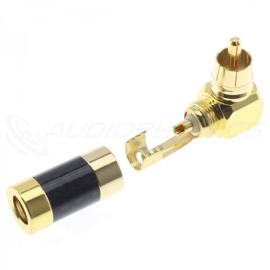 This RCA connector is angled at 90°. This makes it convenient for connecting in tight spaces. Moreover, it offers a good design quality, with gold-plated 4N copper contacts. The body is made of copper and carbon fiber.