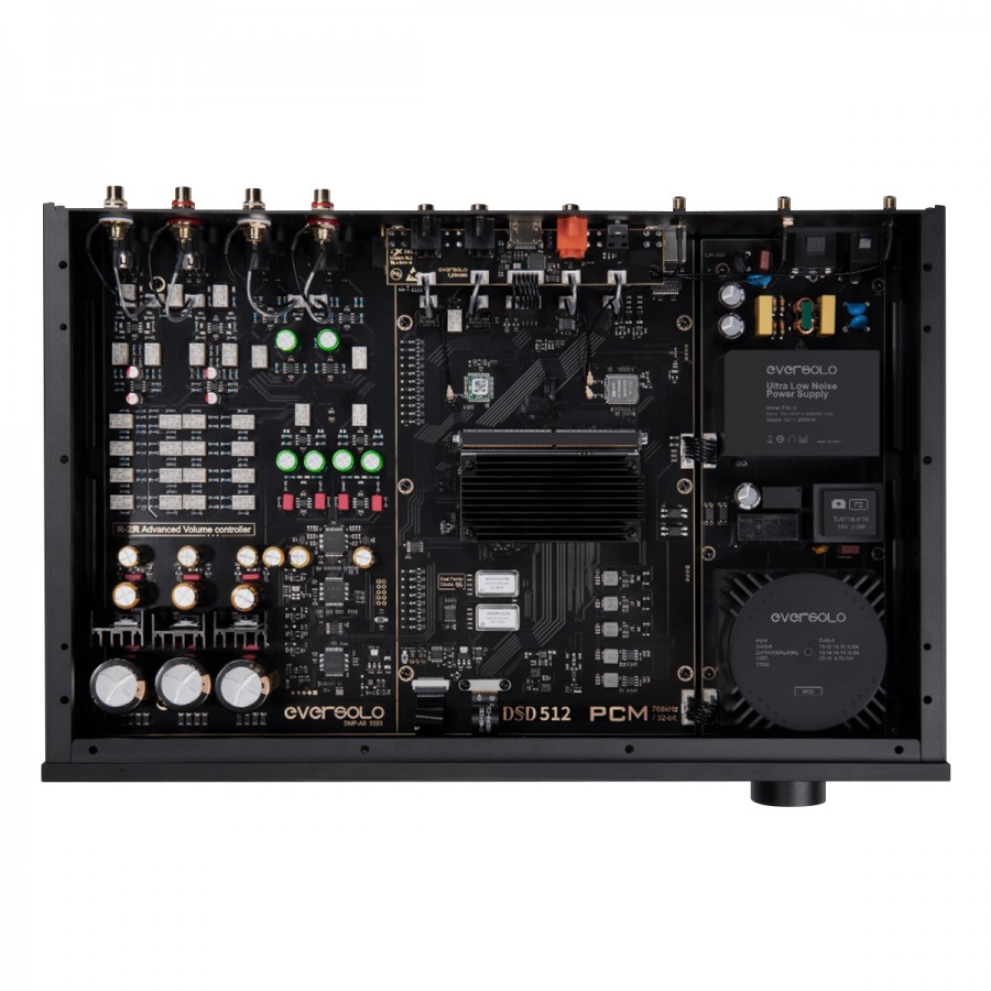 The chassis of the Eversolo DMP-A8 is crafted from aircraft-grade aluminum, CNC-machined with the utmost precision for a particularly robust unit. The brushed front and anodized body form a beautiful combination of classicism and modernity.