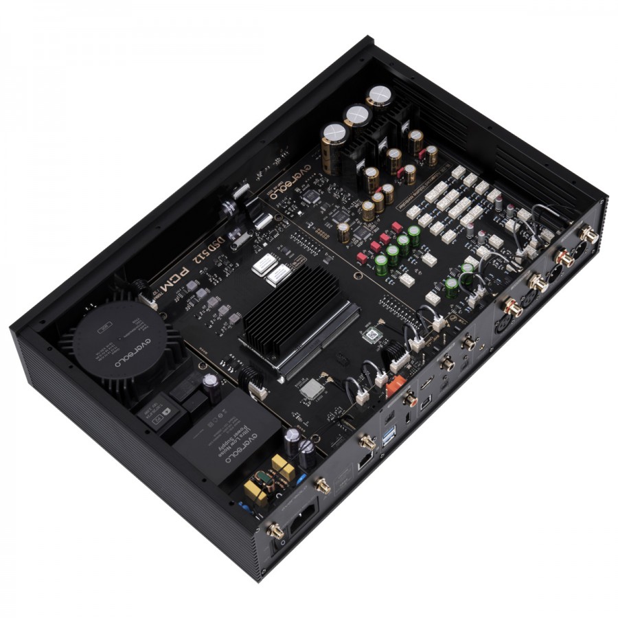 Two Accusilicon femtosecond oscillators with ultra-low phase noise provide the decoding circuits with a clean clock signal (45.1584MHz and 49.152MHz). This design effectively eliminates jitter to ensure extremely accurate conversion and decoding of audio signals, promoting very wide dynamic range and beautiful sound definition.