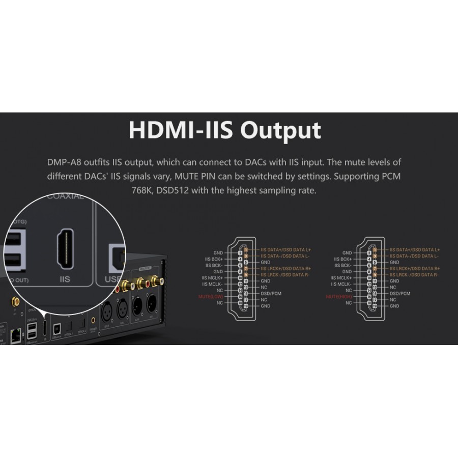 The DMP-A8 benefits from AKM's latest innovation in digital-to-analog conversion. It features the AK4499EX and AK4191EQ DAC chips, and takes advantage of proprietary Velvet Sound technology to ensure sound reproduction that's as precise as it is rich and detailed.