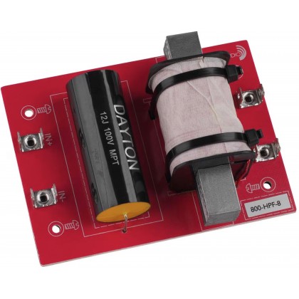The Dayton Audio 800-HPF-8 is a passive high-pass speaker filter with a 12dB/octave slope centred at 800Hz. Designed to restrict the bandwidth of a speaker with a smooth, gentle slope, it can be combined with a low-pass filter of the same frequency to form a second-order Linkwitz-Riley filter, ensuring a perfectly neutral response at the crossover point. The use of high-quality components guarantees a stable and predictable response, while the ability to adjust or shift the cut-off frequencies allows the filter to be adapted to the specific response of each loudspeaker.