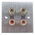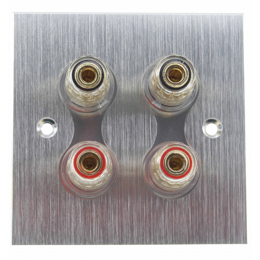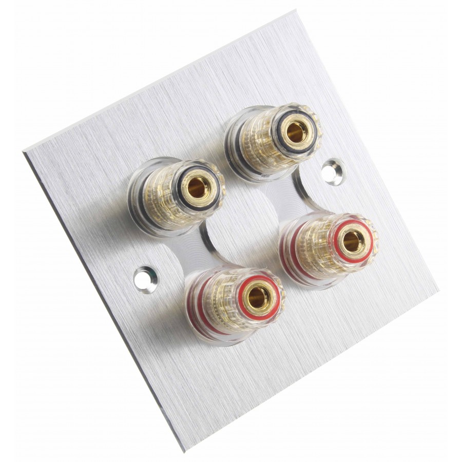 This aluminum wall plate comes with four gold-plated speaker terminals. These terminals ensure good conductivity and resistance to corrosion and oxidation. The terminals accept banana plugs, spade connectors, and bare wires.