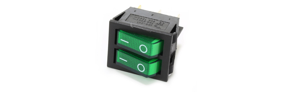 Dual NO Light Switch 250VAC 15A Green