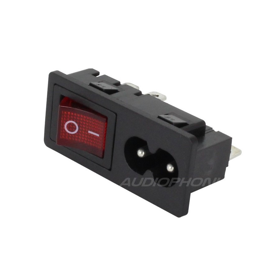 Here is a Red IEC C8 250V 2.5A Light Switch. Connection by 5mm flat connector for solder or welding. Black housing, red switch with I / O rocker inscription.