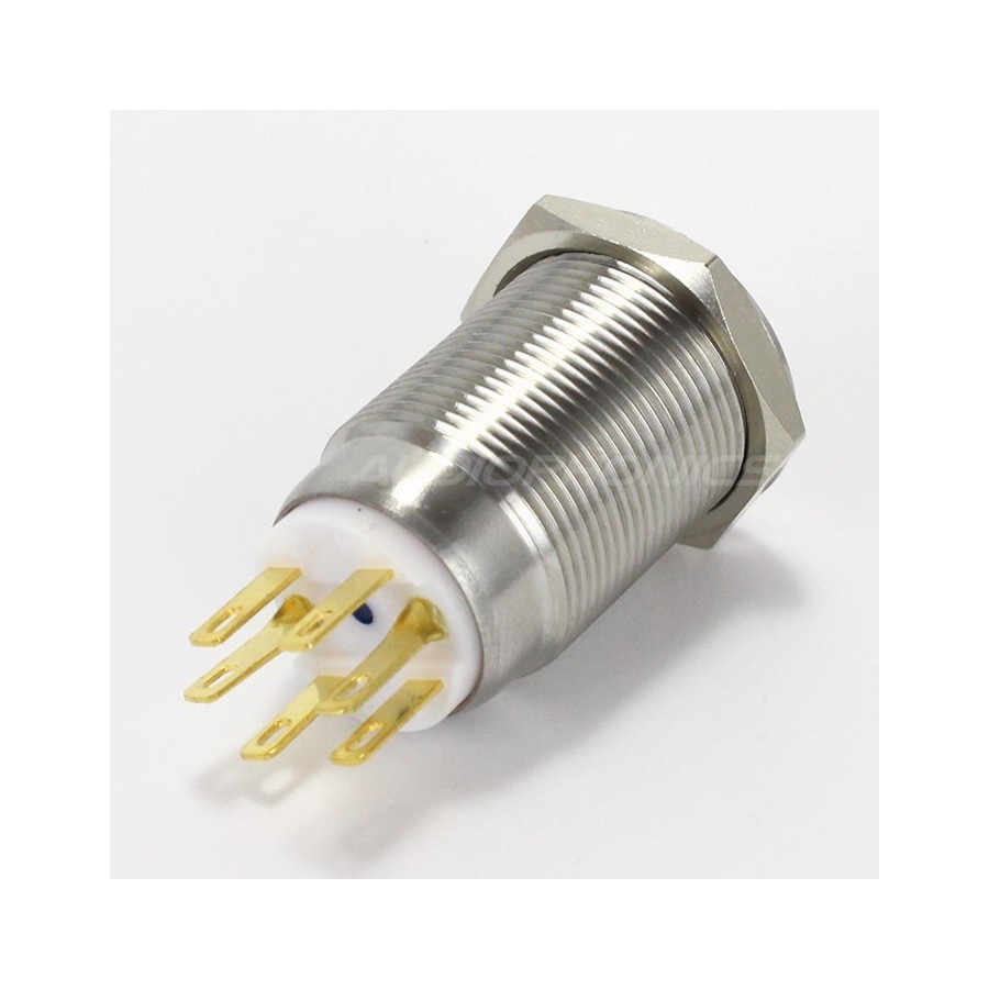 Here is a button Silver stainless steel switch of 230VAC / 5A, and its LED illuminated blue. Ideal for any type of project and DIY assembly. Its 24k gold-plated contacts ensure a flawless conductivity of the signal.