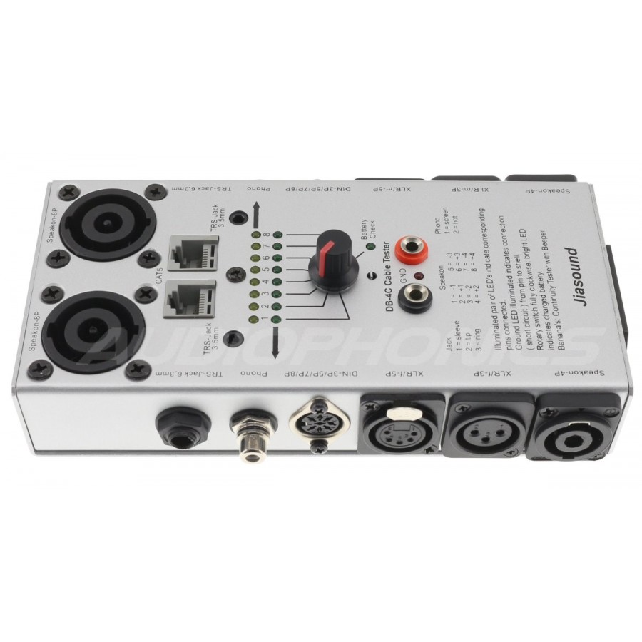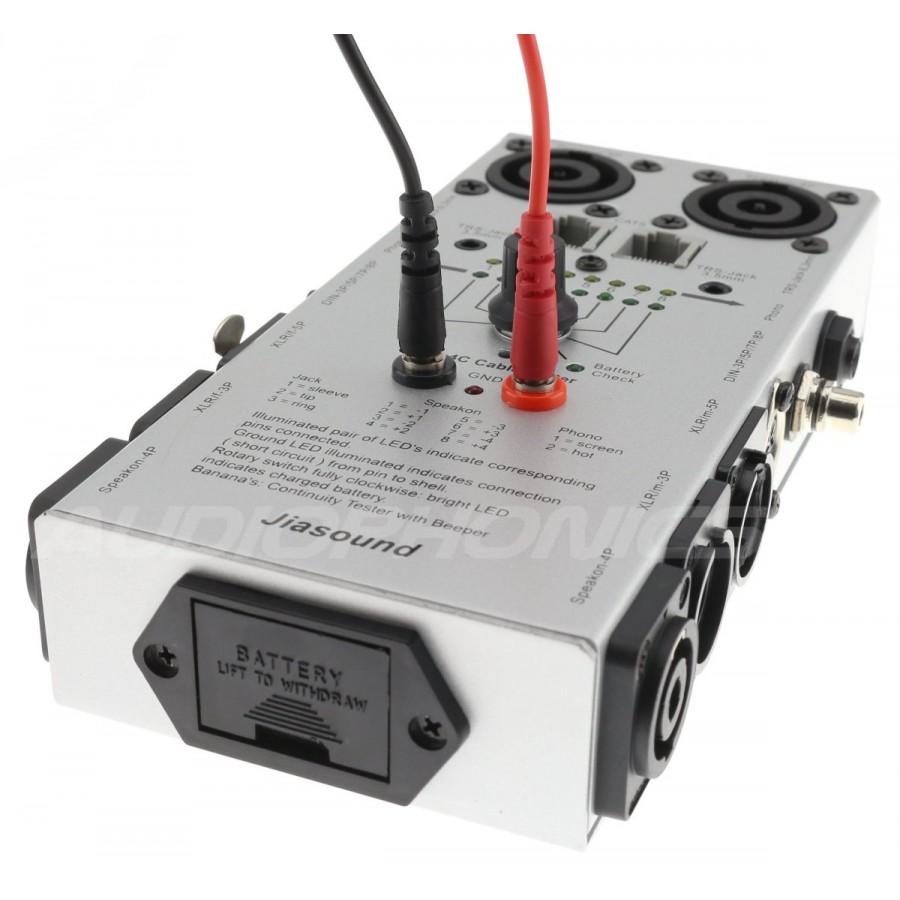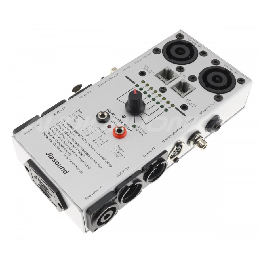 It works with XLR, RCA, 3.5mm / 6.35 TRS, banana plugs, Speakon, RJ45 and DIN connectors (complete list below).