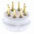 La matière employée est robuste (céramique) mais attention à ne pas la laisser tomber sur du carrelage, elle pourrait se casser comme du verre. Cela dit, on peut souder du câble sur les pins sans que tout ne se mette à fondre autour ... le problème est que les pins (broches) sont de diamètre # 1,75 mm, alors que les ceux des EL34 sont de # 2,30mm. Donc l'enfichage sur les embases de tubes de mon ampli à lampes est trop lâche et source de mauvais contacts (risque d'arcs). Il doit être possible de rattraper la différence en recouvrant les pins avec de la soudure, mais ce n'est qu'un pis-aller. Dommage ...