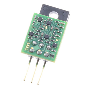 These discrete regulators are the smallest models available on the market. They have a width of 11.4mm, 1.3mm wider than a standard TO-220 format. Due to their small size, they can be combined with narrow heat sinks or even adapt to an existing heat sink mounting hole in your equipment. The tab on the top of the regulator is not covered by the PCB, allowing easy mounting. The pins are placed in the same way as on a TO-220 format regulator.