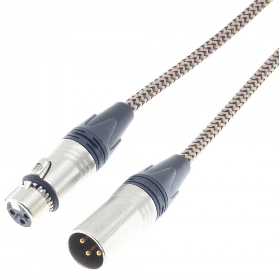 This AES/EBU cable, assembled directly in our workshops in France, offers high-quality design at an affordable price. It features a Canare DA202 110 Ohm cable composed of two gold-plated copper conductors, each measuring 0.18mm², and covered with high-performance shielding. The cable is terminated with a Neutrik NC3FXX-EMC and a Neutrik NC3MXX-EMC connector. These 3-pin XLR connectors with gold/nickel-plated contacts also feature 360° shielding to protect the signal from interference that could degrade it.