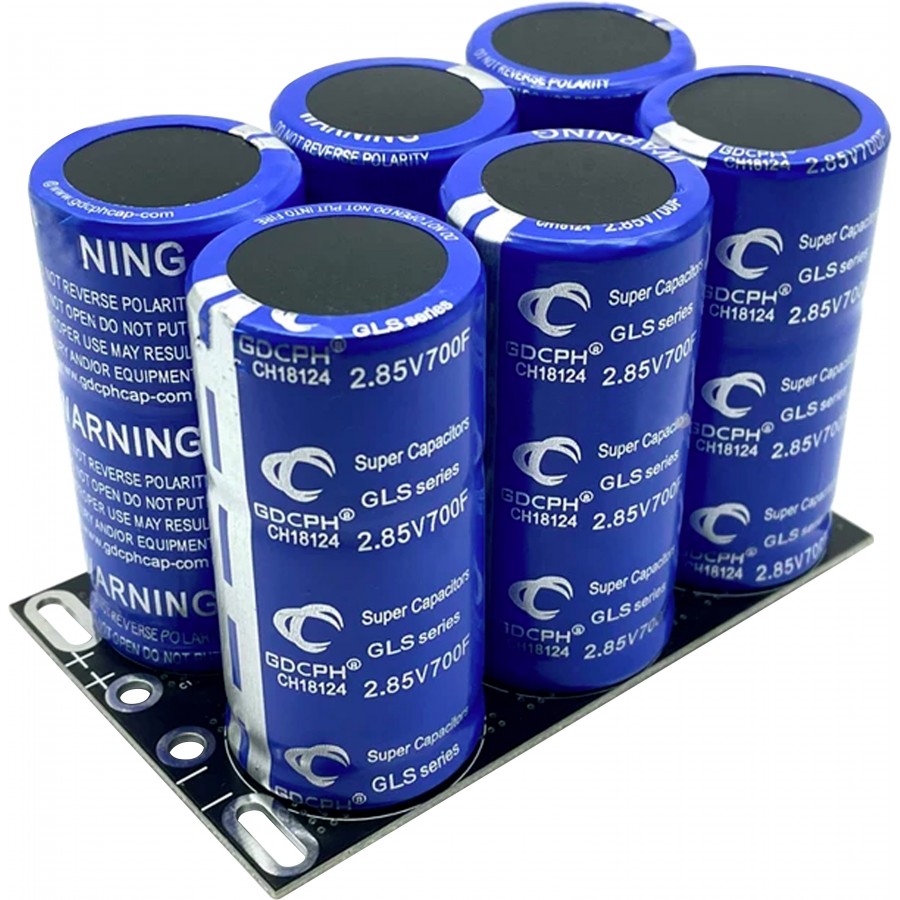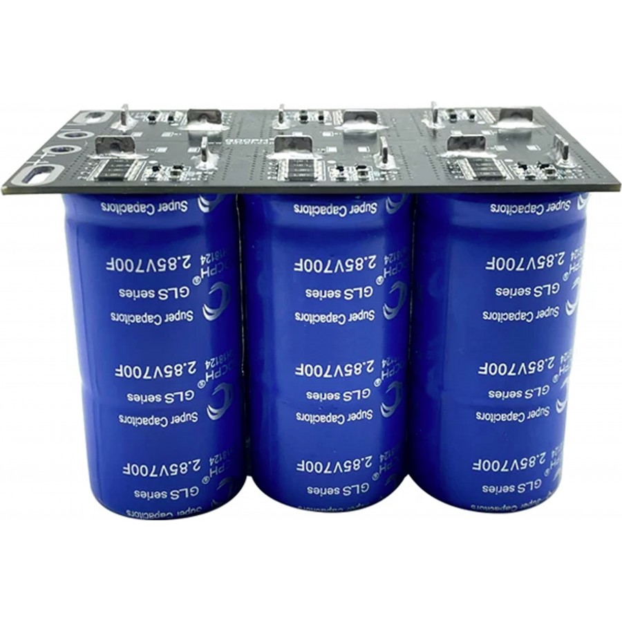 Ce pack de 6 supercondensateurs 2.85V 700F montés sur PCB offre une solution compacte et efficace pour le stockage et la restitution rapide d’énergie. Idéal pour les applications nécessitant des pics de puissance élevés, une longue durée de vie et une recharge ultra-rapide. Il peut notamment être utilisé en association avec le module d'alimentation à supercondensateurs Ian Canada UcPure Mini (vendu séparément).