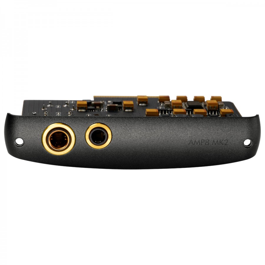 Le AMP8 MK2 dispose ainsi d'une variation de tension de ±8V, améliorant la dynamique et le headroom pour une restitution particulièrement précise et musicale. Des transistors bipolaires sont utilisés et appairés afin d'assurer une excellente linéarité. Les transistors utilisés au niveau de l'étage buffer disposent eux d'un courant de sortie de 2000mA, permettant à l'amplificateur d'accompagner aussi bien des écouteurs sensibles que des casques à forte impédance. On retrouve également des condensateurs ERO de grande qualité participant à la haute qualité de restitution sonore du AMP8 MK2.