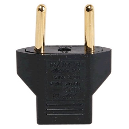 Cet adaptateur secteur plaqué Or permet d'utiliser des cordons secteurs au format USA sur des prises européennes, Schuko ou françaises.