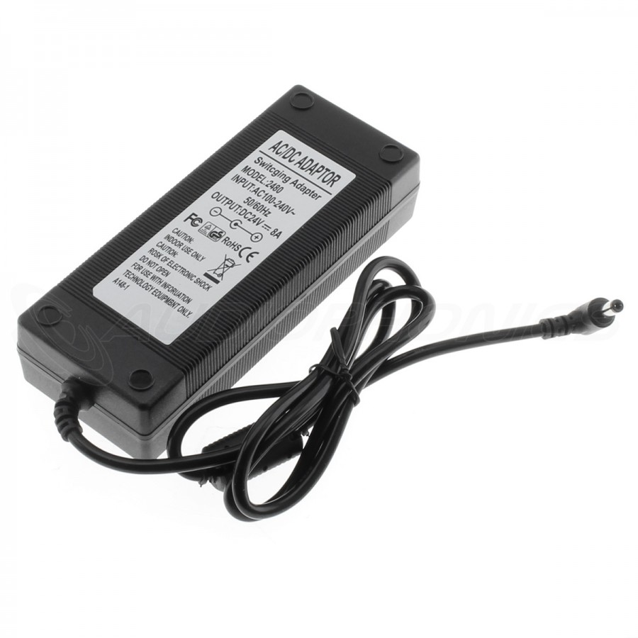 Cet adaptateur secteur prend en entrée une tension de 100-240V AC et délivre une tension de sortie de 24V DC 8A. La sortie se fait sur un connecteur Jack DC 5.5/2.5mm mâle, compatible Jack DC 5.5/2.1mm. Il est également livré avec un câble Jack DC femelle vers fils nus, pouvant notamment être utile pour alimenter un module DIY.
