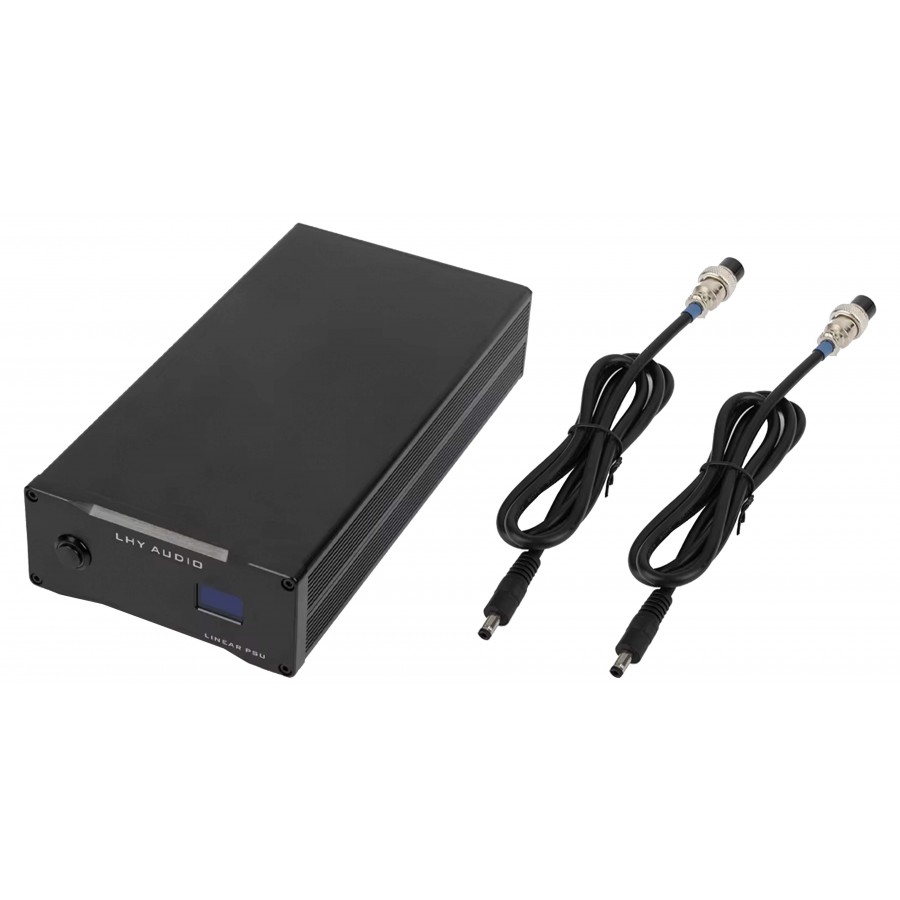 L'alimentation linéaire LHY-Audio est une alimentation à faible bruit reposant sur l'utilisation d'un transformateur torique custom haute qualité, des régulateurs haute performance LT3086, des redresseurs Schottky à courant élevé et faible résistances ainsi que des condensateurs électrolytiques Vishay BC, le tout monté sur un PCB quatre couches avec circuits en cuivre plaqué or. Cette alimentation est en mesure de délivrer 12V DC 2A ainsi que 19V DC 3A simultanément et sans interférences, ce qui permet d'alimenter plusieurs appareils HiFi. La sortie dispose d'une protection contre les courts-circuits et les surintensités.