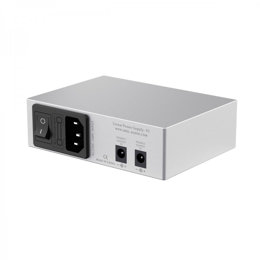 L'alimentation étant le point de départ de tout système audio, SMSL propose avec le P2 une alimentation linéaire régulée de grande qualité, ayant la particularité de disposer de deux sorties. Elle est ainsi capable de délivrer 2x5V 500mA de façon extrêmement propre et stable. Idéal pour alimenter proprement deux appareils nécessitant cette tension et vous permettre un gain de place non négligeable.