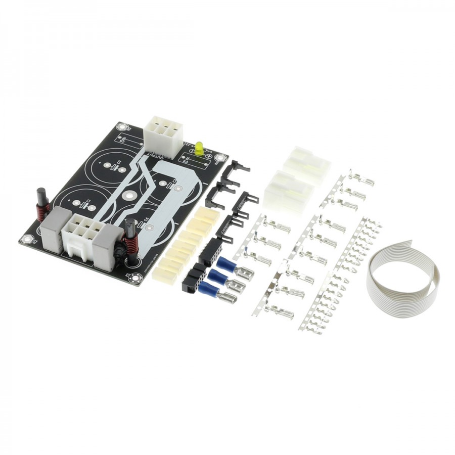 L'alimentation est livrée avec toute la connectique et les câbles nécessaires, ainsi qu'avec un module (optionnel) pouvant accueillir des condensateurs de filtrage (vendus séparément).